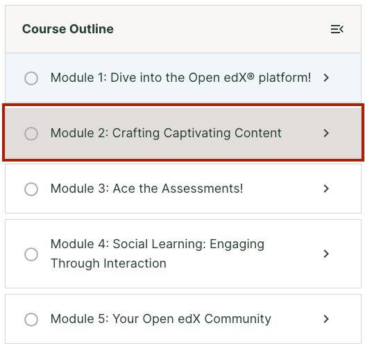 Although the learner is not currently viewing a unit in this module, they are still able to view its contents.
