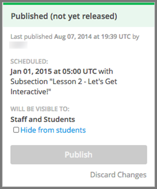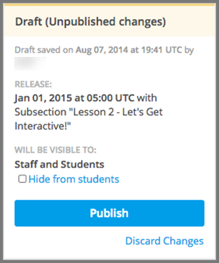 If the publishing status is Draft Unpublished Changes, learners see the last published version of the unit if the release dates for the containing section and subsection have passed.